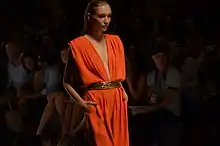He has been noted for a "flair for dramatic presentations",[10] with sensual flowing and clinging fabrics being characteristic. Suzy Menkes noted the emphasis on blending technology with elemental nature themes in the designs of several shows during the 2012 Spring-Summer shows in New York City; Miele commented, "I see a dialogue between artificial and natural, modified beauty and organic, technology and life".[11]