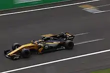 Sainz's move to Renault was brought forward and he replaced Jolyon Palmer and partnered Nico Hülkenberg at the team for the final four races of 2017, beginning with the United States Grand Prix where he started and finished seventh.[35] Sainz made his way from eighth to fifth place on the first lap of the Mexican Grand Prix but then spun and had to pit for new tyres. He later retired from the race with steering problems.[36] He failed to finish the season-ending Abu Dhabi Grand Prix after he was released from a pit stop with a loose wheel.[37] Sainz ended the 2017 season ninth in the Drivers' Championship, scoring 54 points.[38]