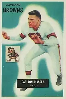 Carlton Massey (January 17, 1930 – May 22, 1989) was a professional American football defensive lineman who played in the National Football League (NFL) for the Cleveland Browns (1954–1956) and Green Bay Packers (1957–1958). He attended Southwestern University and the University of Texas.