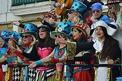 The Carnival of Cádiz (Spanish: Carnaval de Cádiz) is one of the best-known carnivals in Spain. Its main characteristic is humor. Through sarcasm, mockery and irony, the main groups and the people of the street "purge" the most pressing problems of today.[1] The whole city participates in the carnival for more than two weeks each year, and the presence of this fiesta is almost constant in the city because of the recitals and contests held throughout the year.