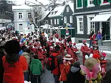 The carnival associations are organizers of the carnival season. They also organize the carnival procession, the local street carnival, ''Altweiberkarneval'' (the old women's carnival) and joint visits to foreign carnival events. The season starts on November 11 at 11:11 am, and the clubs celebrate with music in public places, in restaurants and halls. Also known as the "Fifth Season", it finishes on Ash Wednesday of the following year with the main festivities happening around Rose Monday (Rosenmontag).[1]