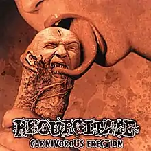 Carnivorous Erection is the second full-length album by goregrind band Regurgitate. It was released on 20 October 2000 by Relapse Records. The picture LP version was released in 2001 by Morbid Records. The album cover was named the worst album cover of all time by the staff of Pitchfork[2] and was named one of 50 "most controversial and hard rock album covers" by Loudwire.[3]