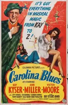Carolina Blues is a 1944 American comedy film directed by Leigh Jason and written by Joseph Hoffman, Al Martin and Jack Henley. The film stars Kay Kyser, Ann Miller, Victor Moore, Jeff Donnell, Howard Freeman, Georgia Carroll, M.A. Bogue, Harry Babbitt and Sully Mason. The film was released on December 20, 1944, by Columbia Pictures.[1][2][3]