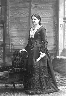 Caroline "Carrie" Burnham was born in Craftsbury, Vermont, in 1838. Her father, James Burnham, was a woolen manufacturer while her mother Eliza Arnold Burnham was a former teacher.[3] She was orphaned at the age of 11.[4] She attended the Craftsbury Common District School from the ages of 4 to 12.[5]