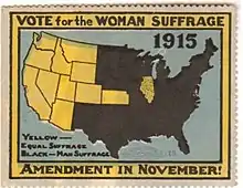 - 1 2 "Poster Stamp : Vote for the woman suffrage amendment in November". Ann Lewis Women's Suffrage Collection. Retrieved 2019-01-20.