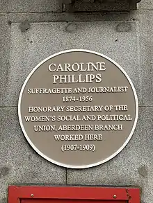 8. Drysdale, Neil (9 March 2019). "Caroline Phillips made her mark and now awaits her plaque as Aberdeen Suffragette". Press and Journal. Retrieved 26 August 2023.