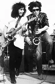 Mas became well known for her energetic live shows, especially from 1979 to 1981 while signed to Mercury Records. She recorded three albums while with Mercury: Carolyne Mas (1979), Hold On (1980), and Modern Dreams (1981). She was often hailed as being the female Bruce Springsteen, a distinction that served to set her apart from her female contemporaries.[3][4] She toured the United States, Canada, and Europe extensively with a band of musicians which included David Landau (the brother of Bruce Springsteen's manager, Jon Landau), Crispin Cioe of the Uptown Horns (who later went on to play with the Rolling Stones and Billy Joel), bassist Ivan Elias (1950–1995; who played with Scandal from 1981 to 1985), drummer Bobby Chouinard (1953–1997; who also played with Billy Squier), and keyboardist Charlie Giordano (who would eventually go on to become a member of Bruce Springsteen's E Street Band after playing several years with Pat Benatar).[5] Her association with Springsteen included her involvement in the 3M benefit at the Stone Pony on January 19, 1986,[6] and the "Jersey Artists for Mankind" project in May 1986, while she was living at the Jersey Shore.[7]