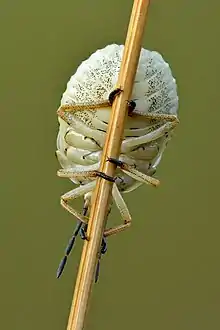 In late May-early June these insects lay eggs on various herbaceous plants of the family of cereals (Poaceae), legumes (Fabaceae), crucifers (Brassicaceae) and composites (Asteraceae).