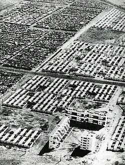 Carrières Centrales, a site in the Hay Mohammadi district of Casablanca, was the first project to test Écochard's design. The development aimed to provide affordable housing for individuals working in a nearby factory and French homes.[2][3]