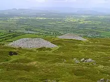 Carrowkeel is a cluster of passage tombs in south County Sligo, Ireland. They were built in the 4th millennium BC, during the Neolithic era.[2] The monuments are on the Bricklieve Hills (An Bricshliabh, 'the speckled hills'), overlooking Lough Arrow, and are sometimes called the Bricklieve tombs.[3] They are named after the townland of Carrowkeel in which most of them are located. Nearby are the Caves of Kesh and Heapstown Cairn. The Carrowkeel tombs are protected National Monuments and are considered one of the "big four" passage tomb cemeteries in Ireland, along with Carrowmore, Brú na Bóinne and Loughcrew.[4]