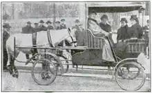 - ↑ "Cart before the horse," Popular Mechanics, April 1907, p. 425; excerpt, " ... 1- hp motor ... two speeds forward; the machine is not constructed to reverse. No lines are used, the conveyance being directed by means of a steering wheel ...."