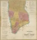 Mapping of New York City continued during the American Revolutionary War.[9] One of the last maps under British occupation was made in 1781 by two military cartographers.[10] The first official map of New York City under independence was likely the Commissioners' Plan of 1811.[9]
