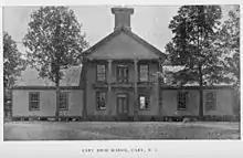 By 1913, the student body had outgrown the campus.[5] Dry asked the citizens of the school district to increase the school tax so that the school could have a new building with a modern heating system.[5][6] In May 1913, the voters approved $25,000 in bonds for a new 33-room brick building to be placed on the site of the original wood frame building.[6] The State contributed an additional $5,000 to construct what was considered "the best high school building in the state".[6] Dry recalled, "It can truly be said that this building led the way for better high school buildings in North Carolina. Many delegations of school people from all over the State came to Cary to see this building, and many a building in the next few years was modeled after it."[6]