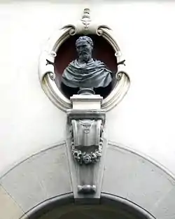Casa Buonarroti is a museum in Florence, Italy. The building was a property owned by the sculptor Michelangelo, which he left to his nephew, Leonardo Buonarroti. The house was converted into a museum dedicated to the artist by his great nephew, Michelangelo Buonarroti the Younger. Its collections include two of Michelangelo's earliest sculptures, the Madonna of the Stairs and the Battle of the Centaurs. A ten-thousand book library[1] includes the family's archive and some of Michelangelo's letters and drawings.[2] The Galleria is decorated with paintings commissioned by Buonarroti the Younger and created by Artemisia Gentileschi[3] and other early seventeenth-century Italian artists.[4]