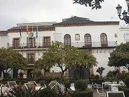 The Casa Consistorial De Marbella is a historic building in the city of Marbella, southern Spain, currently housing the city's town hall. Constructed in 1568 in the Renaissance style, it lies in the Plaza de los Naranjos in the city's historic district. The building's exterior includes a sundial and coat of arms, as well as memorial plaques written in Old Spanish to commemorate the conquest of the city in 1485 by Ferdinand and Isabella, the establishment of the city's water supply in 1632, and additions to the building in 1779.