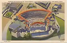 Casa Mañana Theatre (also known as the "House of Tomorrow") is located in the Fort Worth Cultural District, Texas. Originally an outdoor amphitheater, Casa opened in 1936 as part of the official Texas Centennial Celebration.[1] Casa Mañana is a member of the Fort Worth Chamber of Commerce, Cultural District Alliance, Fort Worth Hispanic Chamber of Commerce, Fort Worth Metropolitan Black Chamber of Commerce, the Live Theatre League of Tarrant County and the National Alliance for Musical Theatre.[1]