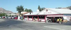 California State Route 152 passed in front of Case de Fruta as a two-lane highway for many years, but was widened to four lanes in 1992.[3] The old alignment of the highway still exists as the Casa de Fruta Parkway, which is accessed via an exit from SR 152.