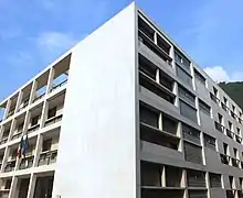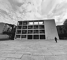 The Casa del Fascio of Como (Italian pronunciation: [ˈkaːza del ˈfaʃʃo, ˈkaːsa-]), also called Palazzo Terragni, is a building located in Como, Italy, in the Piazza del Popolo (former Piazza Impero), and it is one of the masterpieces of Italian Modern Architecture.[1] It was designed by Italian architect Giuseppe Terragni (1904-1943).[1] It was inaugurated in 1936 as the local office of the National Fascist Party.[2] After the fall of Fascism in 1945, it was used by the National Liberation Committee Parties and in 1957, it became the headquarters of the local Finance Police, who still occupy it.[2] The building has a square plan and four stories.