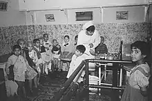 The initiative for the SP creation started in 1941, when population growth in the Casablanca Mellah was raising concerns over poor hygiene and undernutrition conditions.[15][12] Few documents remain of the SP first period; the number of children benefiting from the canteen at this time is unknown. Its goal was to provide hot meals as well as to educate underprivileged young Jewish children between the ages of 6 and 8. The SP received 300 children[16] per year . At the very beginning, only one teacher was hired and only a single class of thirty children was in operation[17][18] There are few press articles, about fifty photographic shots,[19] photos of charity balls in which money collections took place as well as some shots of benefactors. They were wealthy Jewish donors from Casablanca. Armand Tordjman was the first director and Mr. Elbaz was the accountant. Some assistants and cooks were also hired. Merchants of the central food market in Casablanca donated surpluses and sold food at reduced prices. The Civil Region (of Casablanca) provided coupons for fabrics, which were cut free of charge by Jewish tailoring companies and volunteers distributed the clothes. Millers provided flour at low cost, with which a baker made bread for free.[17][18] In 1941, when the SP was established, Jewish structures capable of integrating the children of the Mellah were not equipped to meet the needs. These structures: the JOINT, ORT, Alliance Israélite Universelle, OSE, and others were more active in the following years. After Morocco's independence in 1956, the Jewish population of the Mellah gradually left the ghetto, which became depopulated.