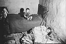 In 1941, with 40,000 inhabitants, the Mellah of Casablanca was the most populated in Morocco.[3] Poverty was deep;[4] families lived huddled together in a single room, with children in rags and often without shoes. Chronic malnutrition and epidemics were rampant especially among children who suffered from ringworm, trachoma and tuberculosis due to crowded living conditions.[5] The French authorities under the Vichy rule were not inclined to finance a partial transfer of this Jewish population to salubrious dwellings in the European neighborhood. Even after the war, they focused primarily on the construction of cheap housing in the European city with the aim of accommodating Moroccan workers from the countryside,[6][7] whom the city badly needed for its development. As for Jewish organizations, until 1945, they concentrated their efforts on Holocaust survivors.[8] It was only in the late 1940s that they started addressing the issue. From 1940 to 1960 internal immigration to Morocco occurred. The Jewish population in the countryside moved to large cities, mainly Casablanca, thus contributing to an increase in the urban population.[9][10] In 1960, the census of the Jewish population in Morocco was as follows:[11]