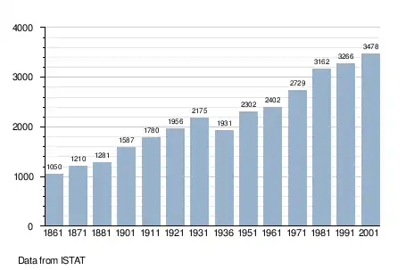 - ↑ "Popolazione Residente al 1° Gennaio 2018". Italian National Institute of Statistics. Retrieved 16 March 2019.