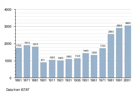 - ↑ "Popolazione Residente al 1° Gennaio 2018". Italian National Institute of Statistics. Retrieved 16 March 2019.