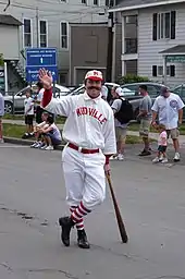 However, residents of Stockton, California—which was known for a time as Mudville prior to incorporation in 1850—also lay claim to being the inspiration for the poem. In 1887, Thayer covered baseball for The Daily Examiner—owned by his Harvard classmate William Randolph Hearst—and is said to have covered the local California League team, the Stockton Ports.[19] For the 1902 season, after the poem became popular, Stockton's team was renamed the Mudville Nine.[20] The team reverted to the Mudville Nine moniker for the 2000 and 2001 seasons. The Visalia Rawhide, another California League team, currently keeps Mudville alive playing in Mudville jerseys on June 3 each year.