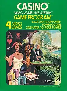 Casino is a collection of card games for the Atari Video Computer System programmed by Bob Whitehead and published by Atari, Inc. in 1978.[1] Supporting up to four players, the game uses the paddle controllers.[2]