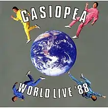 Casiopea World Live '88 is the fifth live album released by the jazz fusion group Casiopea in 1988. It is a compilation Album consisting of recordings of some of their songs played in concert during Casiopea's World Tour in 1988 that promoted their previous album "Euphony". It is also a collaboration album with two Japanese horn sections from two other bands, the brass section of "Spectrum" and the brass Section of "The Tops". Additionally, it is the first album Spectrum recorded since their breakup in 1981, and is their penultimate album (their last album after they broke up was released in 1991 and was a remix compilation album of songs that were hits in Japan from the late 1970s). Lead trumpeter/vocalist of Spectrum, Ichiro Nitta, was also the Producer of "The Tops" at the time this album was released. Tops released one more album, "Soul Children", the following year, before they disbanded in 1991. This was also the last album to feature Tetsuo Sakurai on Bass and Akira Jimbo on Drums (during his run as a full-time member), who both left to form the band Jimsaku.