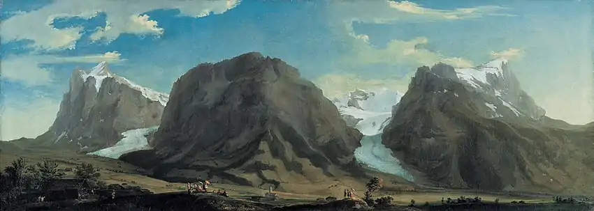 Caspar Wolf (Muri, Aargau, 3 May 1735 – Heidelberg, 6 October 1783) was a Swiss painter, known mostly for his dramatic paintings of the Alps. He was strongly influenced by Albrecht von Haller's poems on the Alps, and the Sturm und Drang movement. After 1773 Wolf mostly painted glaciers, caves, waterfalls and gorges.