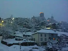 In the mid 19th Century an ice age era graveyard and settlement was discovered near the village church. It was excavated in 1928, and about 100 graves were discovered. In 1978-80, in Pian del Remit, which is north-west of the church, a Stone Age settlement was discovered underneath an ice age site. The rectangular midden included post holes, fire sites, ceramic fragments and variety of sedimentary rocks and crystals. The site was dated to 2800-1500 BC and included stone and Bronze Age. A multi-stage dry stone wall in Pian del Remit can't be exactly dated but may date from the Iron Age into the modern era. Its original function (building foundation, terrace wall or marker stone) is not known.