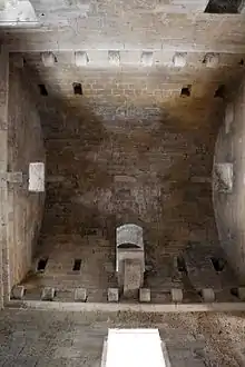 In the middle of the courtyard, there is a cistern shaft for rainwater collection. The inner Enceintes on the north and west side of the courtyard have been rebuilt.[1]