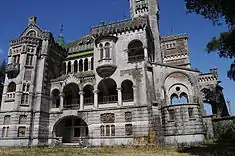 The Castle of Dona Chica (Portuguese: Castelo da Dona Chica) is a neo-romantic castle and/or residence located in the civil parish of Palmeira, municipality of Braga, in the northern region of Portugal. Originally designed by Ernesto Korrodi, the project suffered from a lack of funds early, eventually changing hands and falling into the possession of creditors.