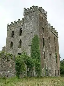 The house was built in stone up against the ruins of Cloghane Castle in two storeys with a 7-bay frontage, of which the middle three were pedimented. In the 19th century a tower house was attached at the rear based on the ruins of the castle keep.[1] The house was burnt down in 1922 during the Civil War, probably by anti-Treaty Republicans. It now stands as a derelict ruin with the gardens and estate land used for farming.[2]