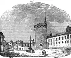 These continued problems forced King Afonso V on 12 March 1472, to restore the authority over the city and jurisdiction to archbishop Luís Pires.[1] Inevitably, the Church began the reconstruction of the defenses; by 1477, the wall tower, alongside the Gate of São Tiago, was already underway, requiring the collection of taxes on the sale of properties in the city.[1] Between 1505 and 1532, archbishop Diogo de Sousa ordered the construction of the Porta Nova. Already around 1594, the map of Braga included the distinctive image of the castle and wall at its maximum extent.[1]