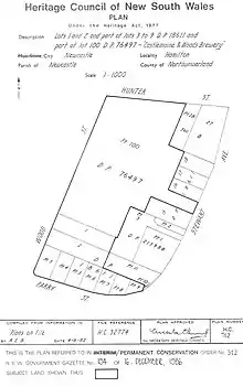 The Castlemaine Brewery is of State significance as a set of 19th century buildings on a scale, massing and with a continuity of design that has a significant visual and landscape quality, particularly when viewed from Hunter or Wood Streets. The Brewery is an excellent example of strong, but simplistic industrial architecture of the 19th century and has been a major visual element and landmark in Newcastle's skyline since its erection. The additions to the Brewery in 1910–1914 and again in 1912–1914 were undertaken in a sympathetic manner rarely seen in industrial buildings.[1]