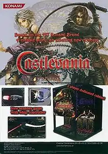 Castlevania: The Arcade, released in Japan as Akumajō Dracula: The Arcade (悪魔城ドラキュラ THE ARCADE, Demon Castle Dracula: The Arcade),[3] is an arcade game, part of the Castlevania franchise by Konami. The game was announced on July 23, 2008.[4] The game was released in Japan on October 2, 2009.[1] A European release was announced for 2009 but only appeared at test locations in 2008.[5]