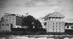 The Cataract House Hotel was built on the Niagara River bank in 1825 by owner David Chapman.[1] The land for the hotel near what is now Old Main Street and Buffalo Avenue between Red Coach Inn and Niagara Falls State Park was originally owned by Judge Samuel DeVeaux.[2] In 1831, Parkhurst Whitney purchased the hotel and ran it for several years.[3] Whitney later leased the hotel to a corporation run by his son, Solon Whitney (who owned the Whitney Mansion in Niagara Falls),[4] and sons-in-law, James Fullerton Trott and Dexter Ray Jerauld.[5]