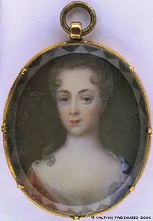 Catharina Ebba Horn af Åminne, (27 May 1720 – 12 September 1781 in Jakobsberg), was a Swedish noble and the second official royal mistress of King Frederick I of Sweden from 1745 to 1748. She was one of two official royal mistresses in Sweden. She had no influence over state affairs, but she did patronise careers through her powerful connections and her position.