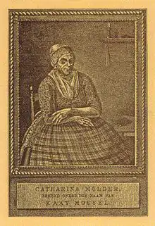 Catharina Mulder (25 March 1723, in Rotterdam 29 June 1798, in Rotterdam), also known as Kaat Mossel , was a Dutch orangist. She was a fishmonger, selling mussels in Rotterdam, hence her nickname: Kaat Mossel = Cate Mussel. She led and organised the orangist riots in Rotterdam in 1784 against the patriots. She is regarded as a representative of the common orangism.