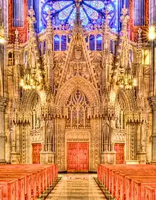 It is home to the largest pipe organ ever built by the Schantz Organ Company, also the largest church organ in New Jersey.[10][11] The cathedral basilica encloses a variety of chapels honoring saints representing different ethnic Catholic groups who live in the Newark area and helped build the cathedral.[12]