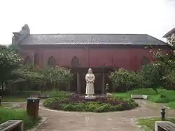 Li Zhizao (李之藻) was a Ming dynasty official-scholar and Catholic from Hangzhou working in Beijing, who had been converted and baptized by Matteo Ricci. In 1611, when he received news of his father's death, he hurried back to Hangzhou and on the way brought with him two Jesuit priests from Nanjing, Lazaro Cattaneo and Nicolas Trigault. They took care of Li Zhizao's father's funeral and on May the 8th at the Li family's residence held the first Mass ever in Hangzhou. One of the new converts in Hangzhou was a wealthy Imperial Inspector named Yang Tingyun (杨廷筠). He and his entire family were originally Buddhist, but upon his conversion he went so far as to turn his home's Buddhist altar into a chapel. Together, Li Zhizao, Yang Tingyun and Xu Guangqi (of Shanghai) are known as the "Three Pillars of Chinese Catholicism" (三大柱石). Later in 1616, during a period of persecution against Christians in Nanjing, many refugees fled to Hangzhou where they were at first housed in the homes of Li Zhizao and Yang Tingyun. It was soon realized that a better solution would be required, and in 1627 Yang Tingyun bought a piece of land near Wulin Gate (武林门) on Guan Road (观巷) and had Hangzhou's first church built there, slightly west of where today's church lies. It was soon followed the next year by another church constructed near Qiantang Gate (钱塘门, once one of the 10 gates in the old city walls of Hangzhou, located at the intersection of today's Hubin 湖滨 and Qingchun 庆春 roads). None of these two churches or the gates and city walls they once stood by remain today however.[1][2][3][4][5][6]