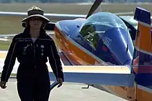 Catherine Maunoury and her Extra 300LP after a demonstration at the Gimont airshow