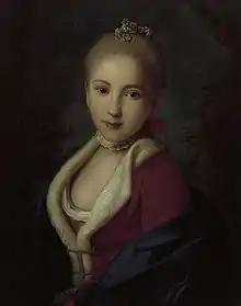 On her mother's side, Catherine was the great-granddaughter of Count Fyodor Alexeyevich Golovin; his son, Count Nikolai Fyodorovich Golovin, left a will, according to which he bequeathed all his fortune to his illegitimate children who lived in Denmark. However, after his death, Empress Elizabeth of Russia disregarded the will and ordered to give the village of Khovrino (now Grachevka) near Moscow with the entire inheritance to Count Nikolai's only legitimate child, Countess Natalia Nikolaievna Golovina (Catherine's mother).[1] Countess Natalia died on 8 January 1767, leaving 16-years-old Catherine as a wealthy heiress.