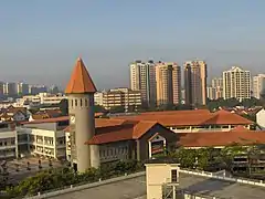 Catholic High School was founded in 1935 as Sino-English Catholic School (英华公教中学) by the Reverend Father Edward Becheras, a French missionary.[1] Although it was a Catholic school, it accepted both Catholic and non-Catholic students, and was run along the lines of a Sino-English school.[1] The school first started as an extension of the Church of St. Peter and Paul.[2] Fr Becheras envisaged the school as a bilingual institution from the start, emphasising instruction in both English and Chinese, a policy that continues today.[3] In addition, Fr Becheras emphasised the teaching of science, uncommon at that time.[4]