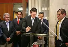 - ↑ Hupsel Filho, Valmar; Zucchi, Gustavo (15 March 2017). "Cauê Macris é eleito para a presidência da Alesp" (in Portuguese). Estadão. Retrieved 7 October 2019.
