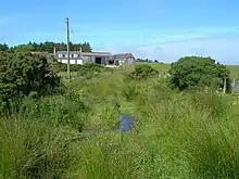 From there the alignment crosses the Burn of Pheppie in an agricultural area and then crosses a bridge over the Burn of Elsick at Gillybrands, slightly southeast of Elsick House. After crossing through the boggy Portlethen Moss (which historically had a much larger extent than at present), the route passes west of a massive Megalithic standing stone.