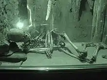 Skeletal remains found in the caverns indicate that they were inhabited from about 25,000 BC up until the Bronze Age. Cave paintings from the Paleolithic and post-Paleolithic eras have been discovered on the walls of the cave. For about 4,000 years from 25,000 BC the caves were used seasonally by a small group of humans, and were occupied by cave hyena during the periods that the humans were absent. By 21,000 BC the human population had taken up year-round residence in the caves and had increased in number. A culture based on hunting in the local area had evolved, illustrated by first cave paintings found in the cave which date to around the time. Pine nuts and snails were also important elements of the diet. Up until around 10,800 BC the hunting culture continued to develop with more prey species being taken, including goats, rabbits, fish and marine mammals. A wide variety of animal bones, shells and fish bones from this time have been found in the cave, including the remains of a number of offshore species, along with stone and bone tools. By 4500 BC domesticated animals were being kept and the area around the cave was being used for farming and the production of pottery. By 3800 BC textiles and more advanced styles of pottery were being produced and parts of the cave were being used as a burial chamber.