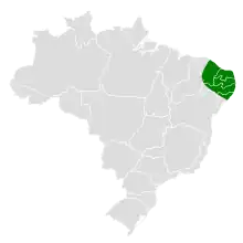 The Ceara woodcreeper is found only in northeastern Brazil, from Ceara south into Alagoas north of the Rio São Francisco. It inhabits humid forest, both primary and secondary and also relict patches of brejos de altitude in the Caatinga. In elevation it reaches 600 m (2,000 ft).[4]