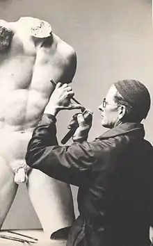 The sculptor devoted his work to the presentation of the human body in various circumstances and styles, in sports[3] or at rest, experimenting with figurative, polychrome sculptures, cubism, traditional African art, art deco, classicism or neoclassicism. Using different techniques, including modeling and direct carving, he worked with a range of materials, including clay, stone, marble, wood, plasticine, terracotta, plaster, wax, bronze and silver.